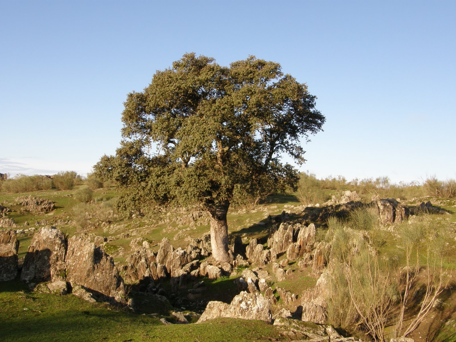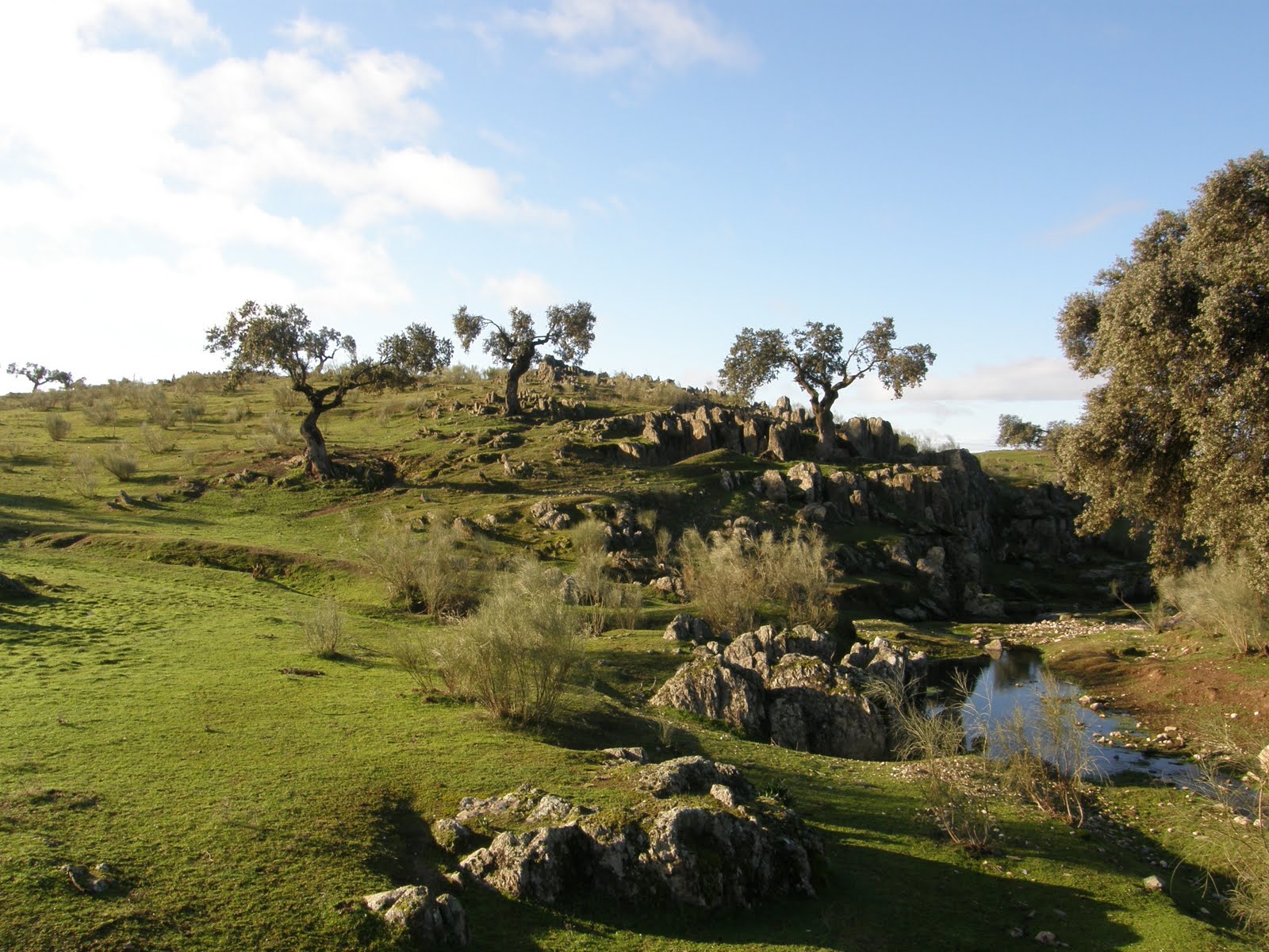 Es una dehesa bastante peculiar, salpicada por pequeñas agujas de piedra que asoman en el terreno.