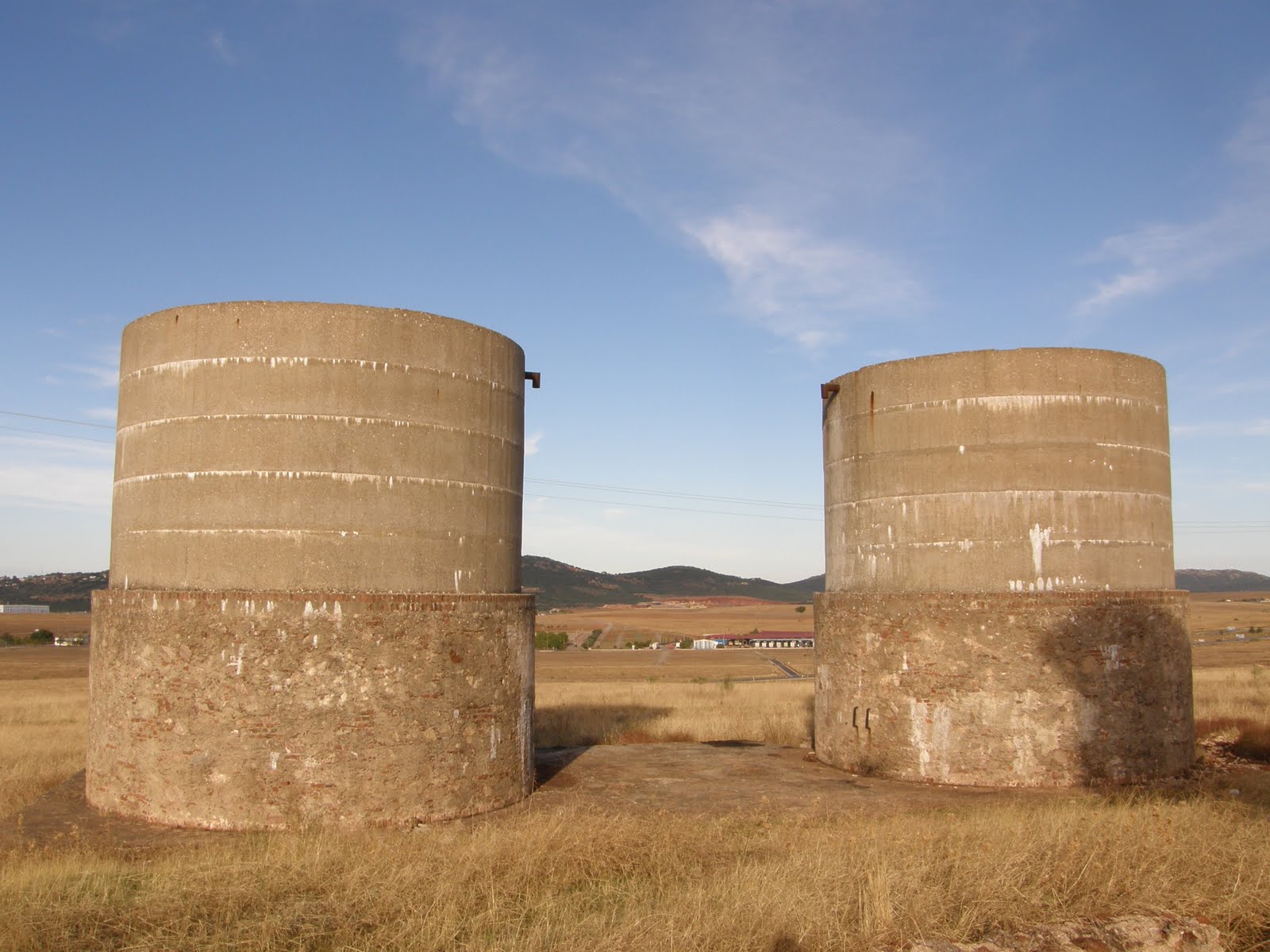 Saliendo de la ciudad de Cáceres, los restos mineros son visibles enseguida. Enfilamos camino hacia el antiguo campo de aviación, hoy recinto ferial pero que conserva elementos de su cometido original.