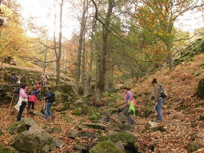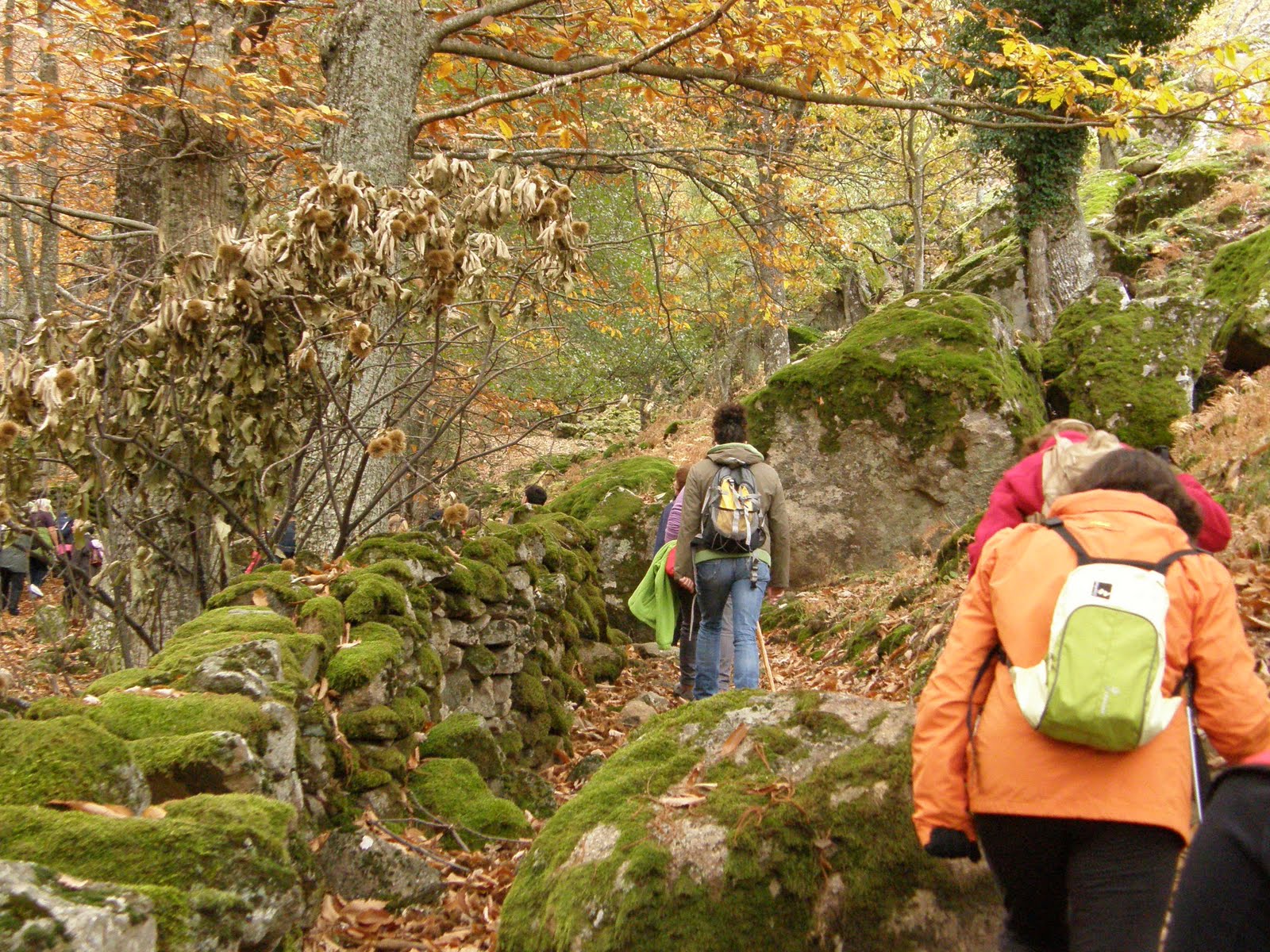 El grupo, fiel a su destino, recorre el valle entre garganta y garganta, contando árboles y recolectando castañas.