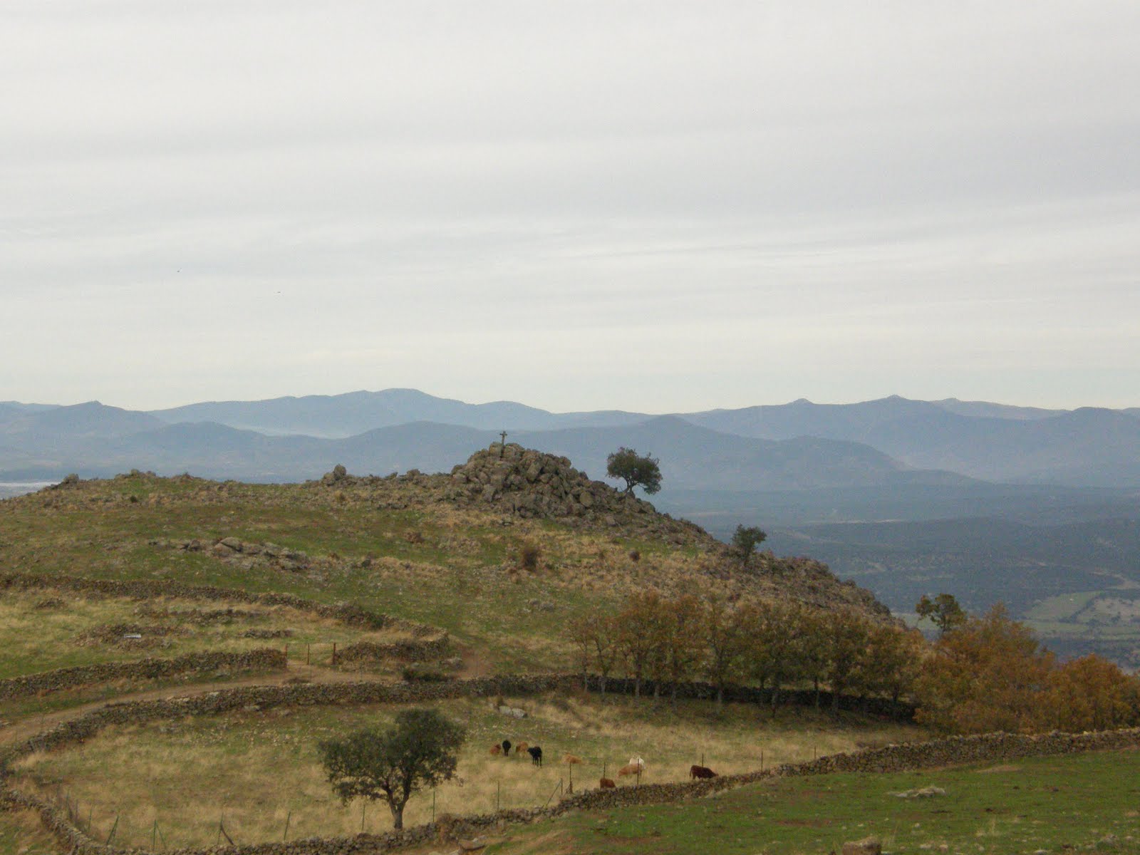 Y llegamos al Picute, este cerro coronado por una cruz. Al fondo. Las Hurdes y la Peña de Francia.