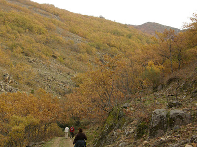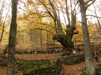 En esta ocasión Luisa y yo respondimos a la llamada del Grupo de Desarrollo Integral del Valle del Ambroz, DIVA, que dentro de las actividades de la 13ª edición del Otoño Mágico en el Valle del Ambroz, proponía hacer una ruta magnífica en el apartado PAISAJE Y PAISANAJE. La ruta se denomina ”A Gargantilla por el Picute” y parte de la localidad de Segura de Toro hasta Gargantilla pasando por los Castaños del Temblar y el Picute. Unos 16 kms de recorrido con contínuas subidas y bajadas que transcurre por bosques densos que en otoño ofrecen una paleta de colores más que mágica, envolvente. Castaños, robledales, brezos, piornos, aulagas…