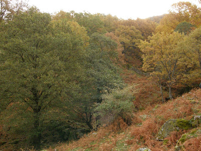 El bosque se hace más denso, curioso que conserve los bancales de su antiguo uso agrícola, quizá ese es el secreto de esta belleza que impone.