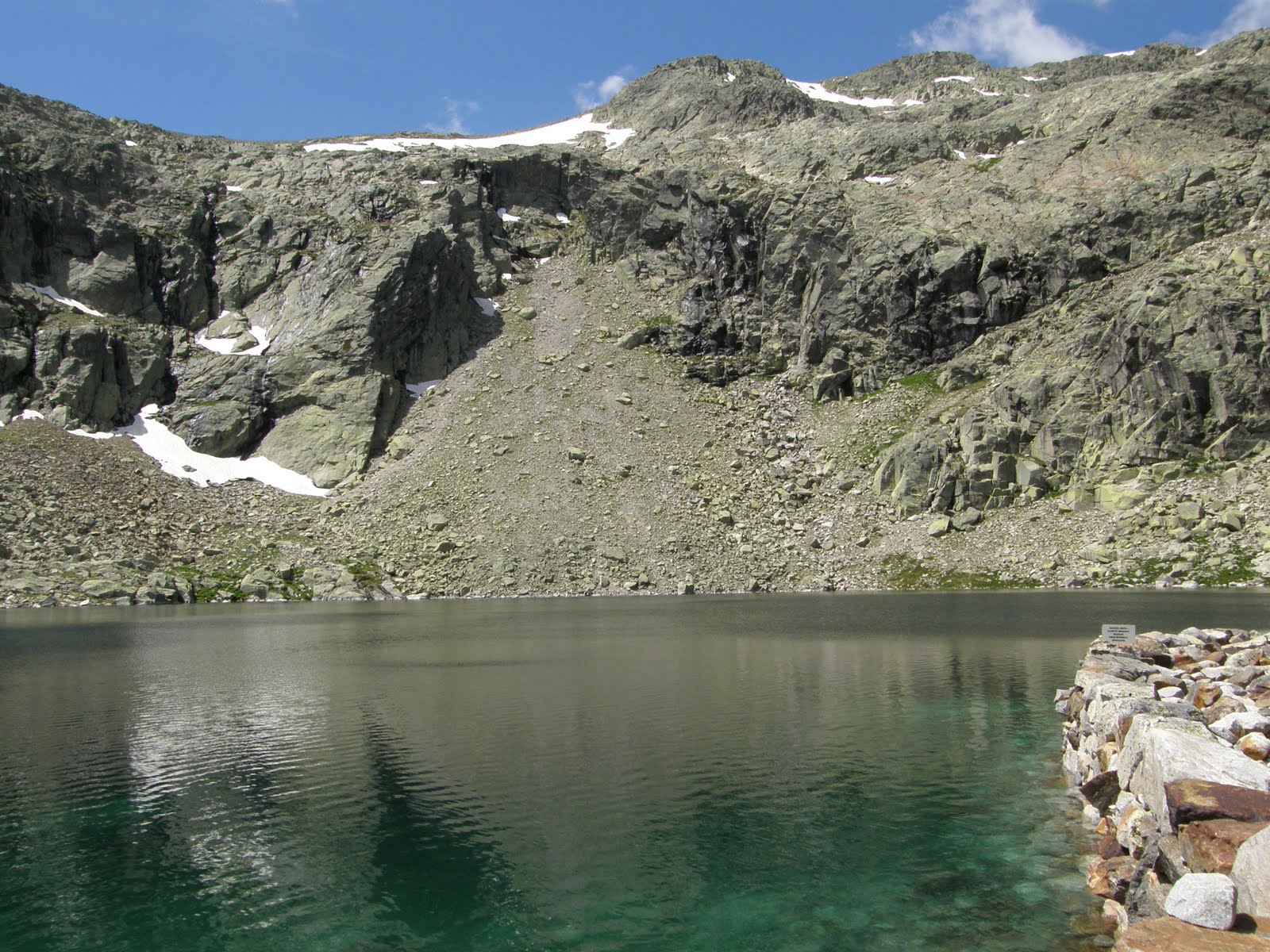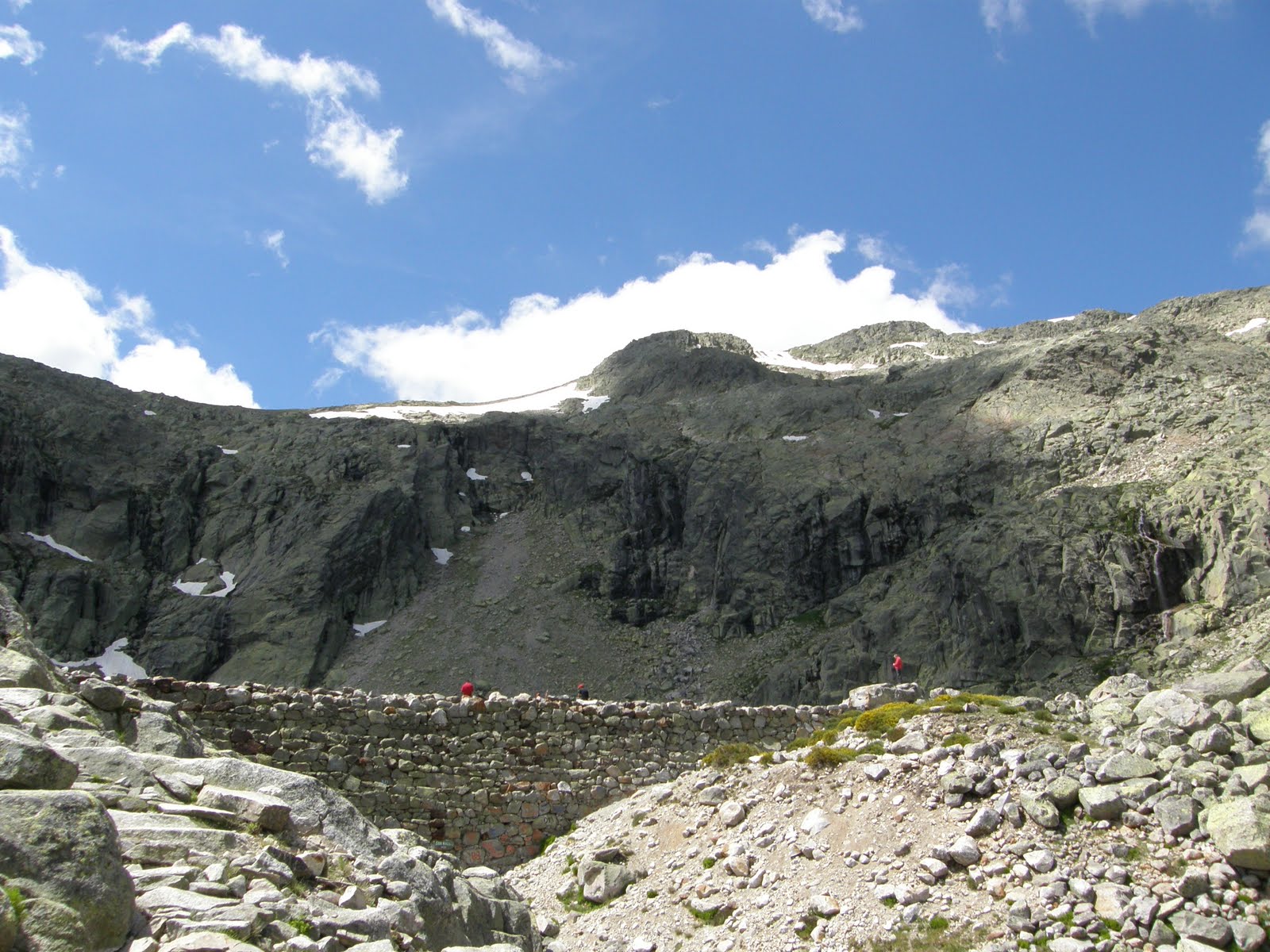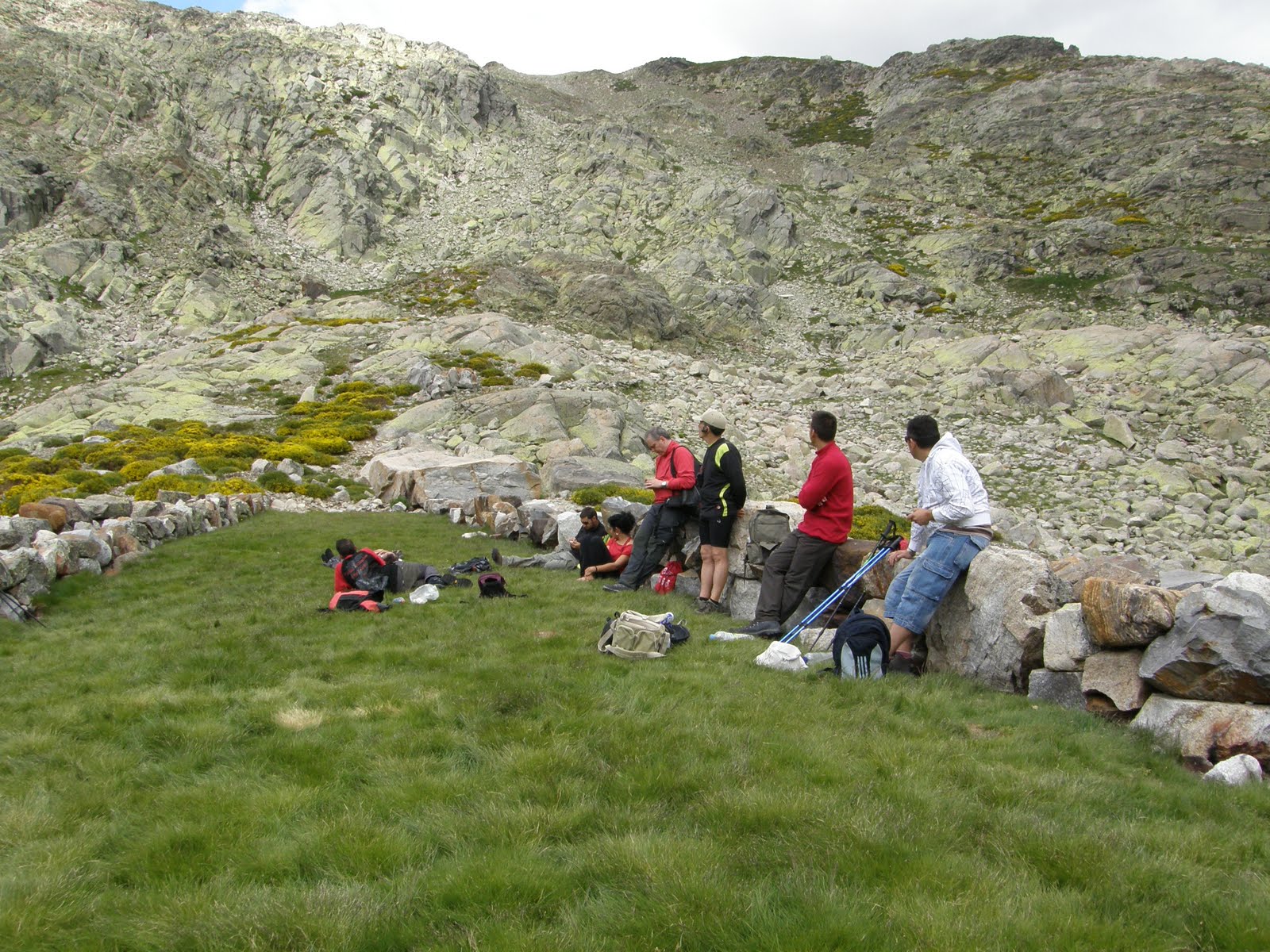 Sobre la pared de la presa, convertida en un pequeño jardín, descansamos del esfuerzo y saboreamos la hazaña. Es hora de reponer fuerzas.