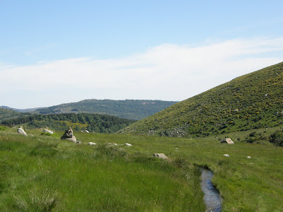 Mojones de piedra comienzan a guiarnos por este prado encharcado de agua para garantizar el pasto al ganado