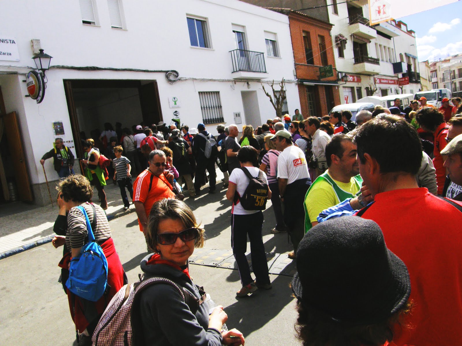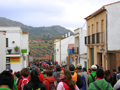 La salida del pueblo de La Zarza y, por tanto, los primeros momentos de ruta concentran a los participantes que irán dispersándose a lo largo del camino