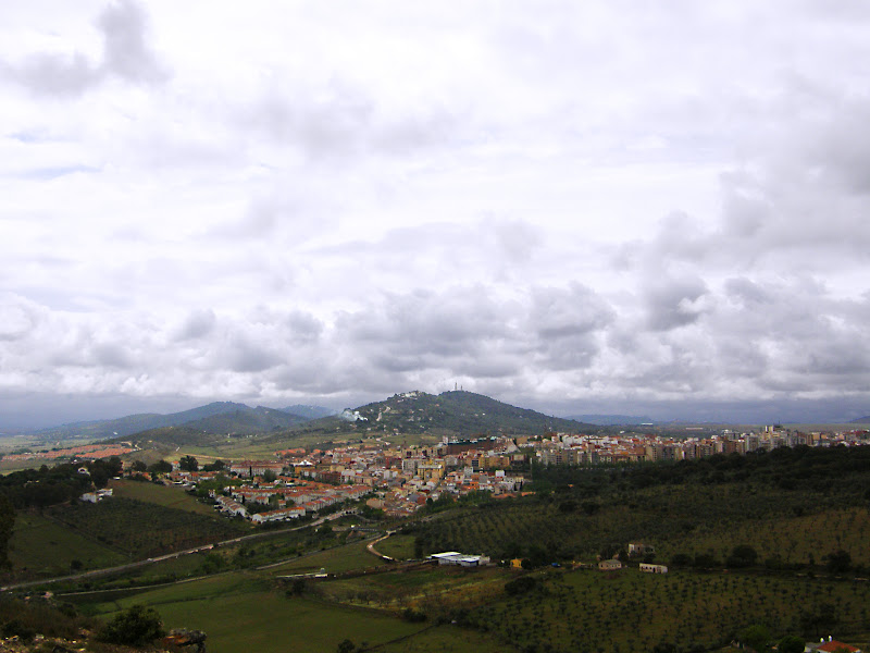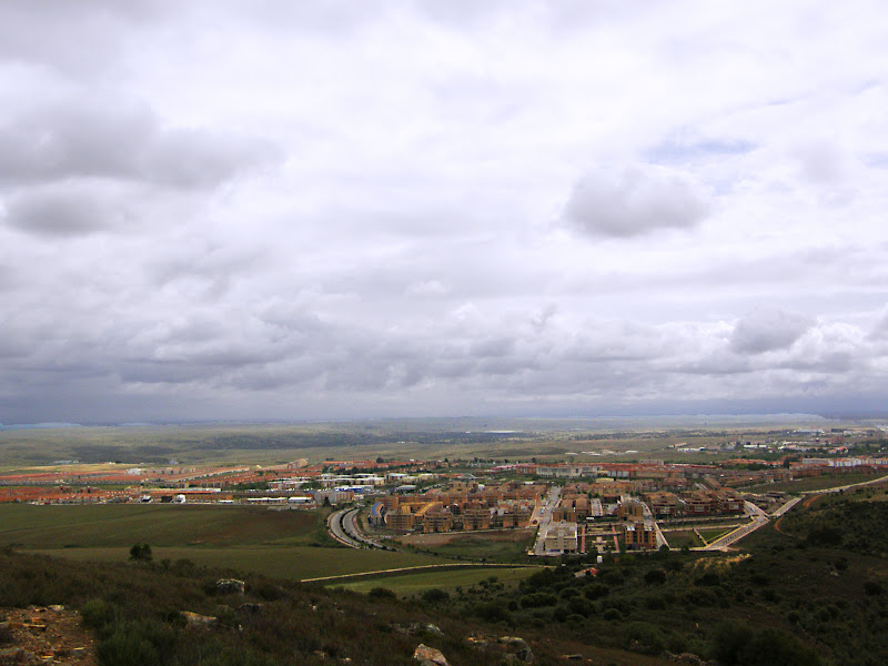 Al ascender por la Sierrilla descubrimos, al fondo, la localidad de Casar de Cáceres