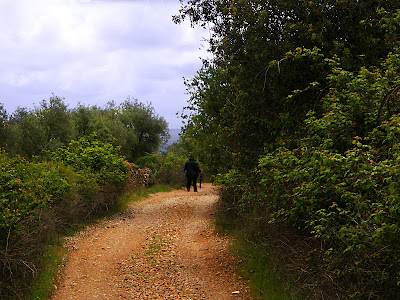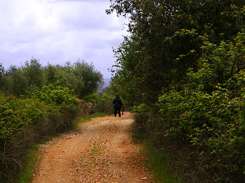 Giramos a la derecha, hay un pequeño poste que marca el desvío junto a la linde de una finca, pero hay que estar atentos. El cerro del Lobo muestra su bosque mediterráneo.