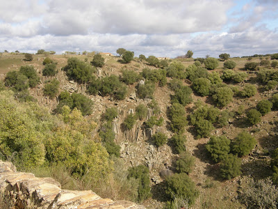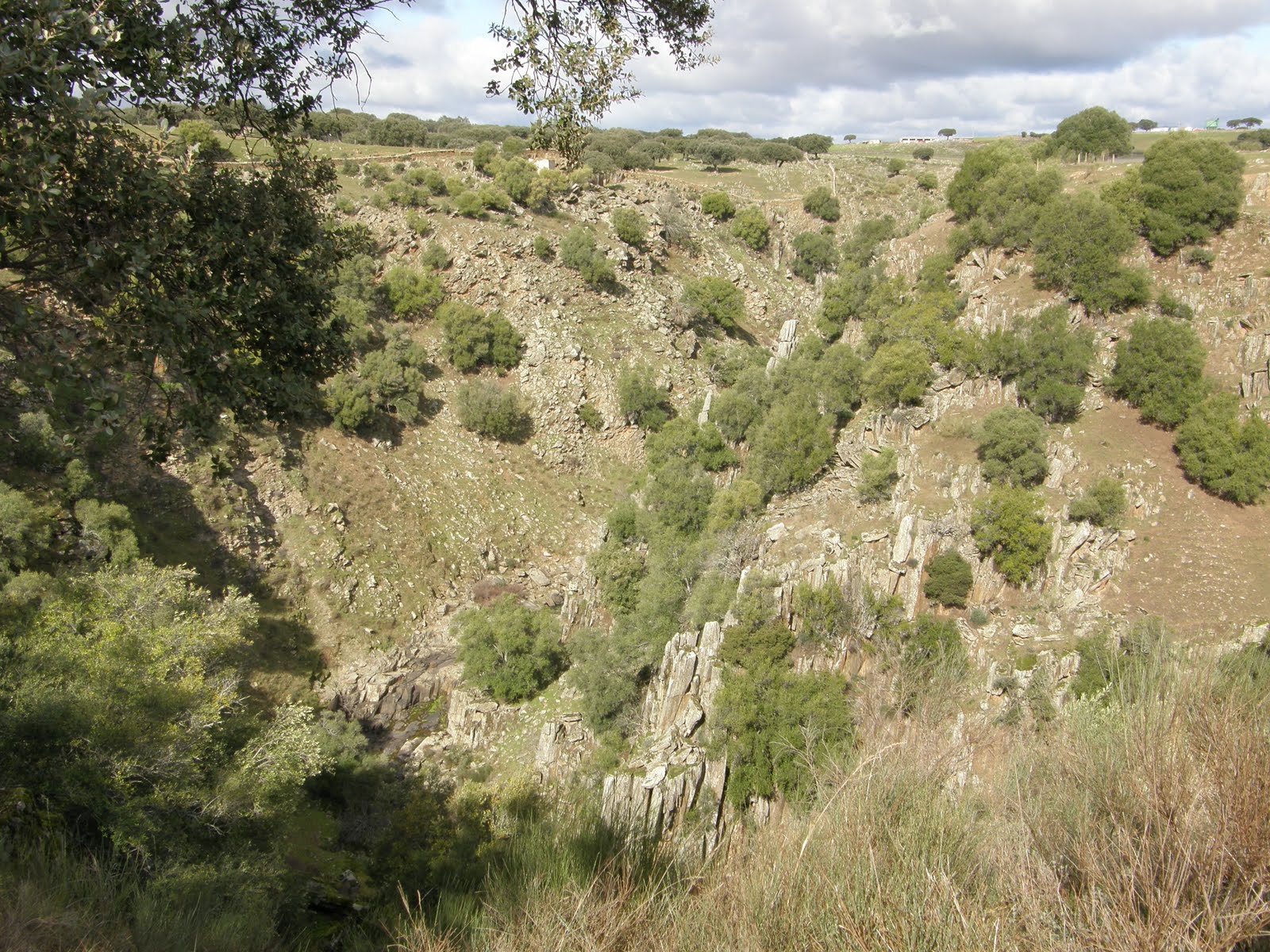 En una de estas elevaciones, de algo más de 300 metros, la dehesa se muestra inmensa, se pierde a la vista en la penillanura cacereña, delante está encajonado y guiado el río Almonte en sus últimos coletazos, todavía no lo vemos.
