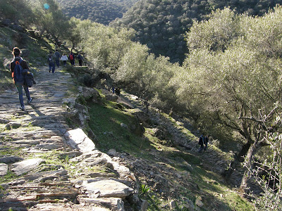 Que me gustan los apoyos de los olivos, curioso también que en algunos de ellos, se construyese una pequeña pared, de pizarra por supuesto, que impedía que las aceitunas al caer del árbol saliesen rodando colina abajo. Es pura adaptación al medio, antropología, las cosas que aprende uno cuando caminas con la gente de aquí.