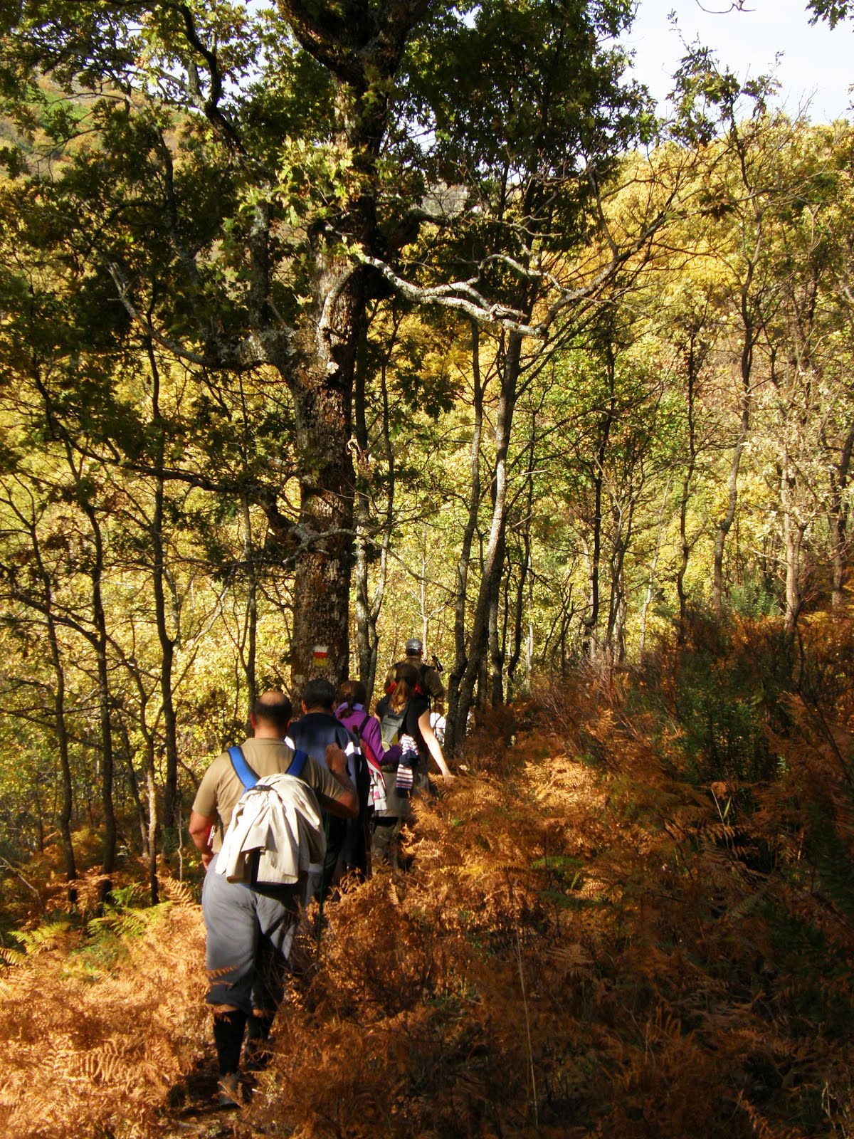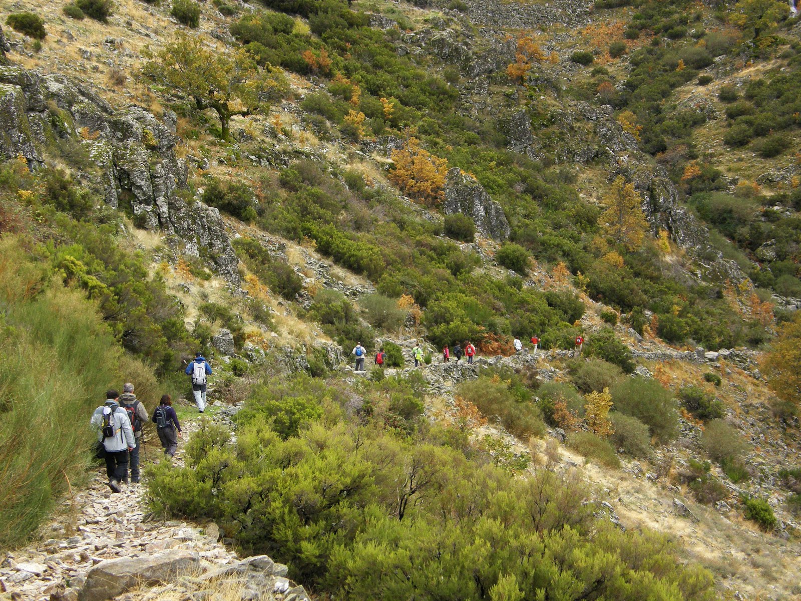Recuperadas las fuerzas comenzaremos la bajada en zig zag por calzadas de piedra hasta el viejo camino de los carboneros, en referencia a que fue utilizado para traer carbón vegetal a las tierras del Ambroz desde las del Jerte.