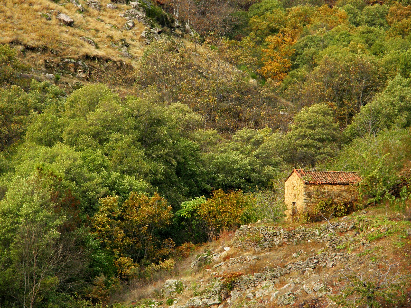 Al llegar a lo alto de la pequeña loma y después de cruzar el valle de Gargantahonda, divisaremos las ruinas de la casa de la fuente del espino. Pasaremos por delante de la casa del espino.