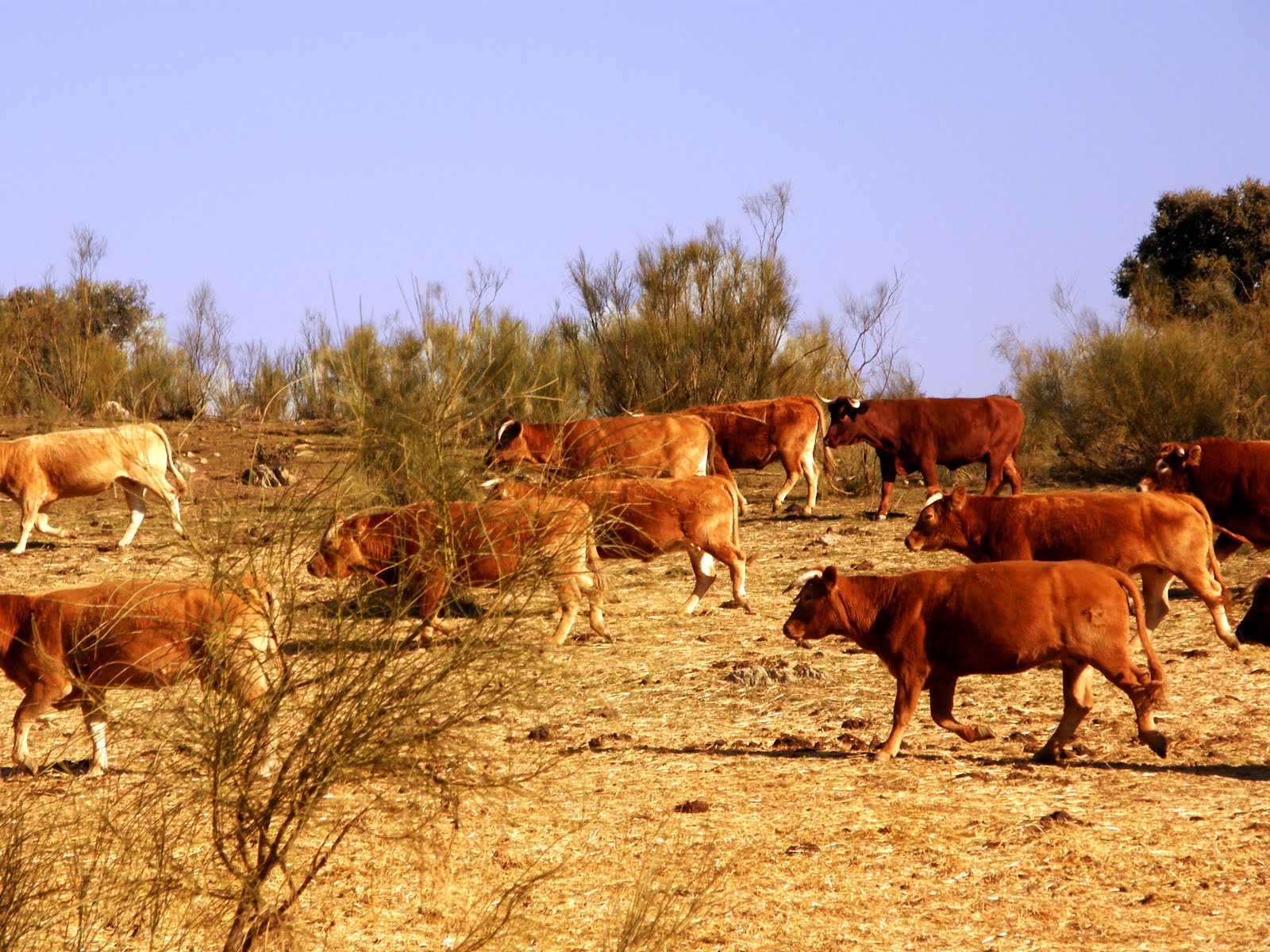 Entramos en la dehesa de los Tres Carrascos, donde suele haber mucho ganado, pero se nota que están acostumbrados a la presencia de gente y ni se inmutan