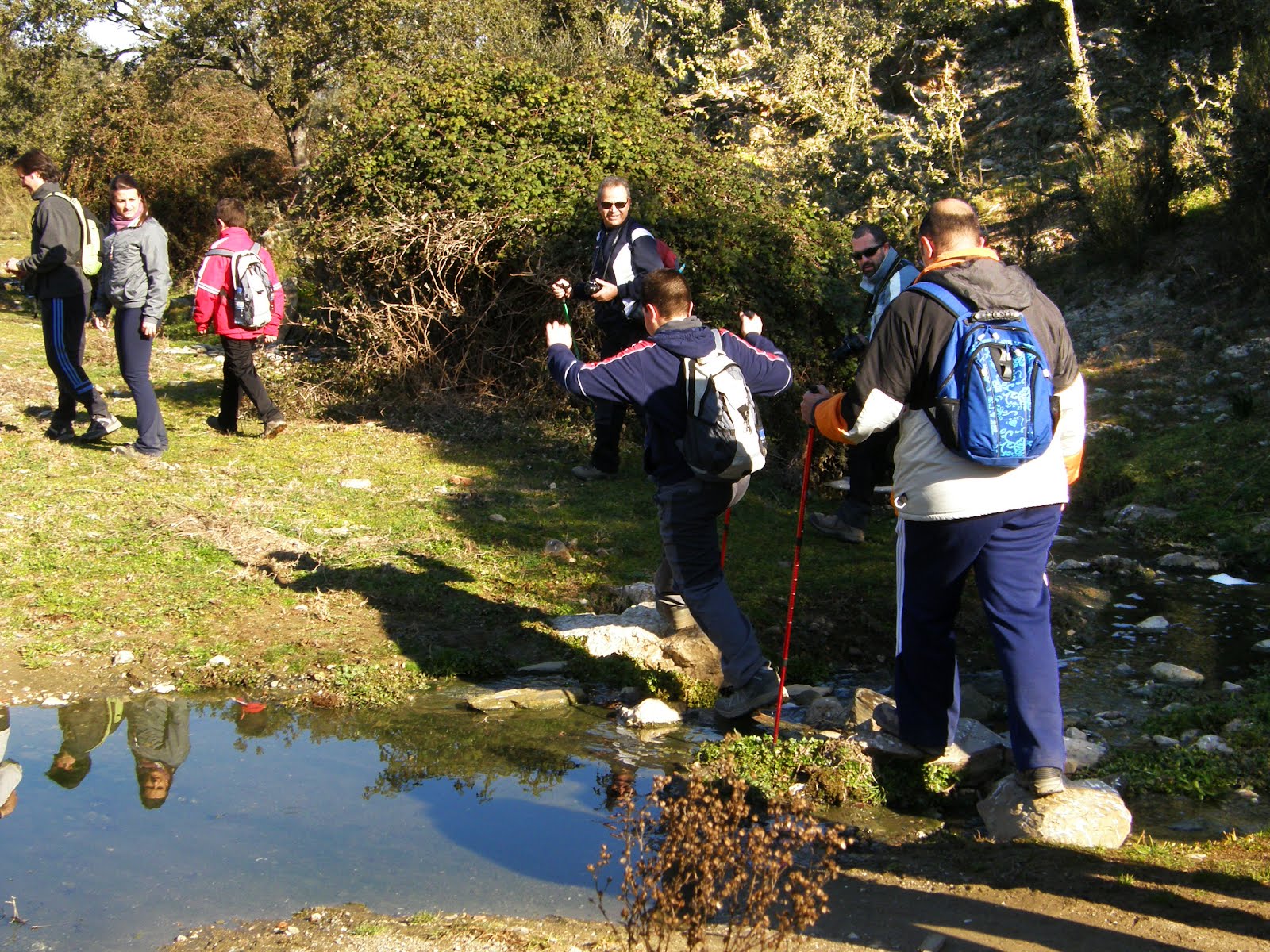 Junto al Arroyo de la Huerta y en las zonas más bajas, la lluvia caída los días antes ha dejado los caminos anegados y obliga al caminante a buscar el paso alternativo, aunque siempre hay valientes que desafían los charcos, protegidos por el calzado adecuado.
