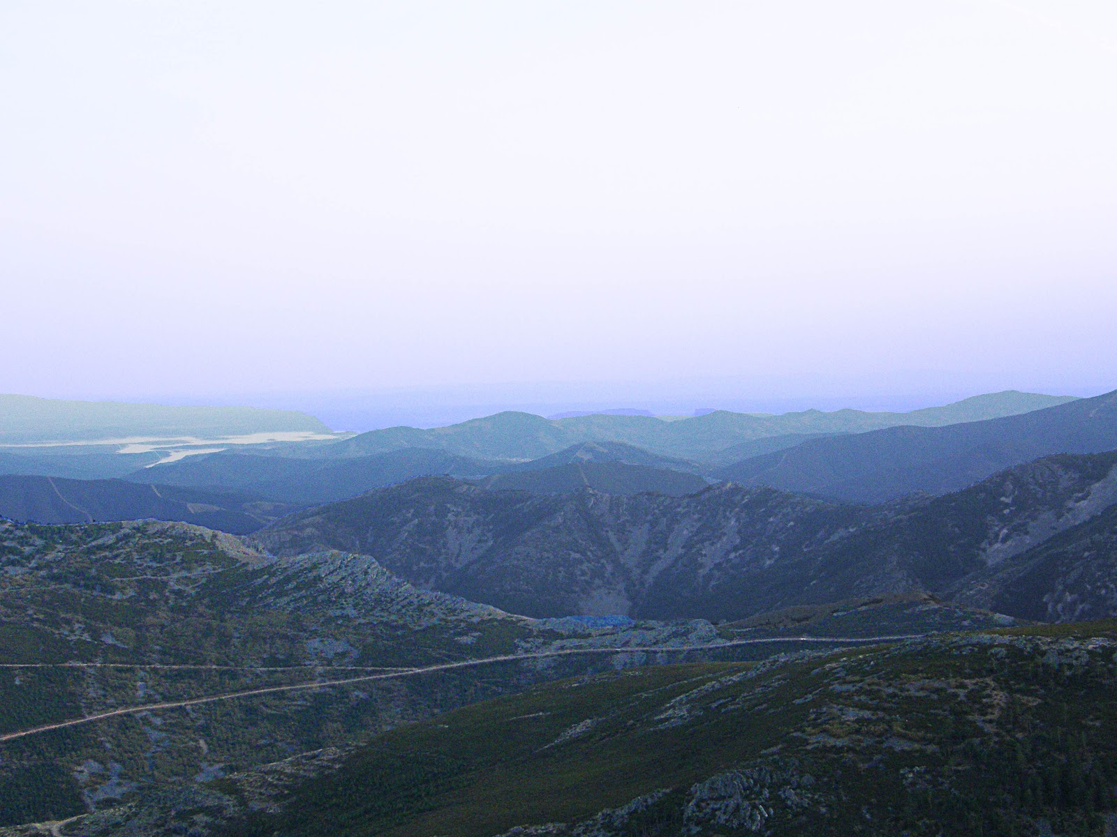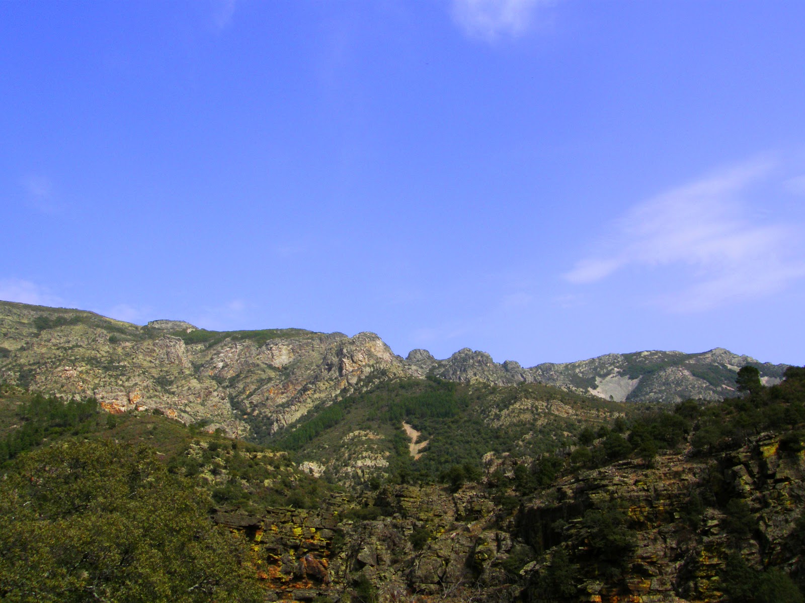 Desde el puerto de la Cruz de Piedra, Gata se ve así de hermosa. Junto a esta portilla entre las sierras del Salido y Las Jañonas, junto a la cruz de piedra que le da nombre, iniciamos el descenso a Torre de Don Miguel por un camino, junto al arroyo Hondo, que antes era vereda, y que las máquinas han convertido en pista.