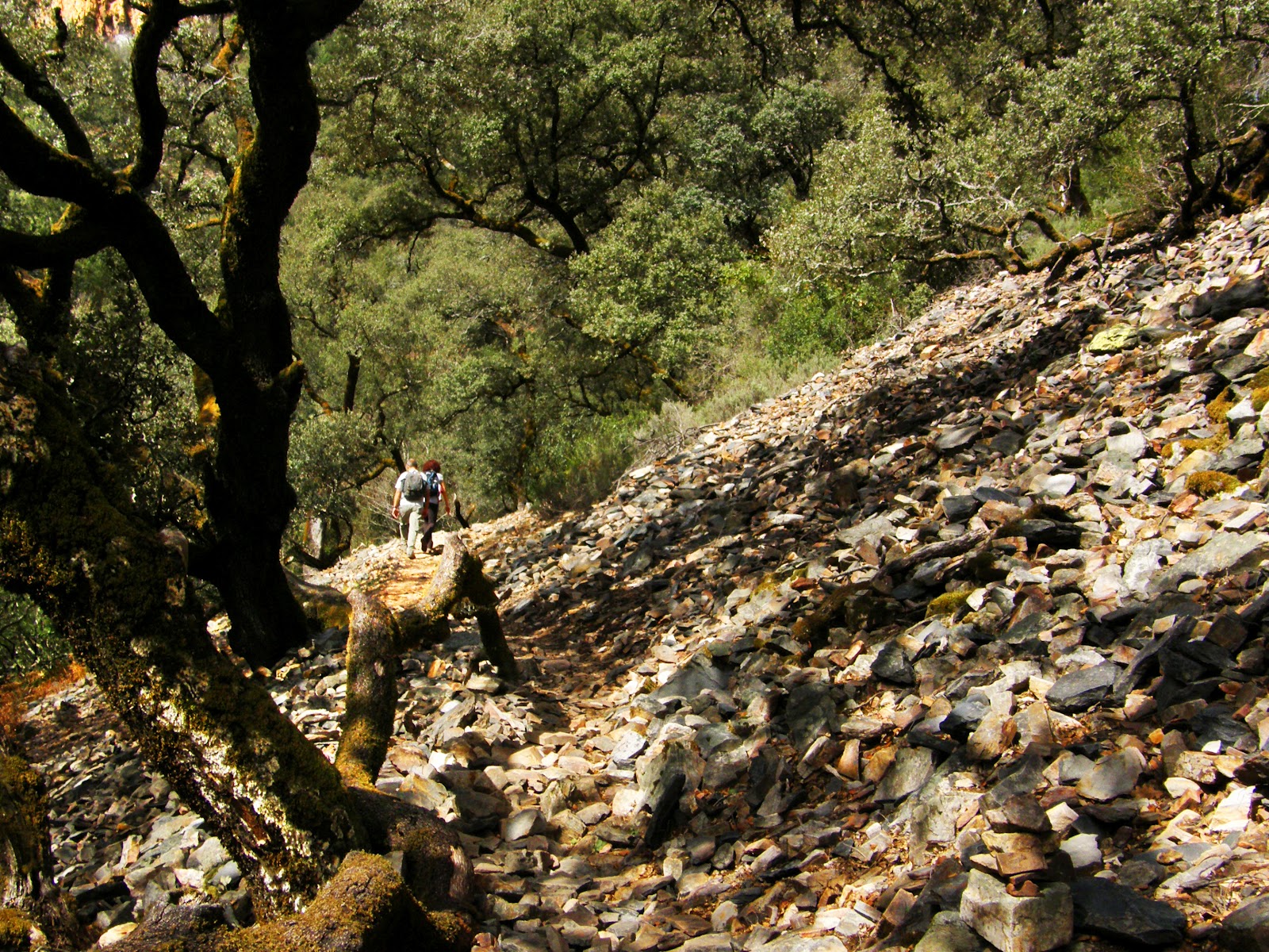 Un inmenso robledal, paredes de piedra y el viejo camino nos acogen en la subida a Santibáñez el Alto por este paraje denominado Hondón de los Olivares.
