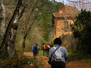 Sigue el arroyo de San Juan cerca de nosotros, mientras caminamos por el paraje de la Rapaza; las viejas construcciones molineras aún son visibles.