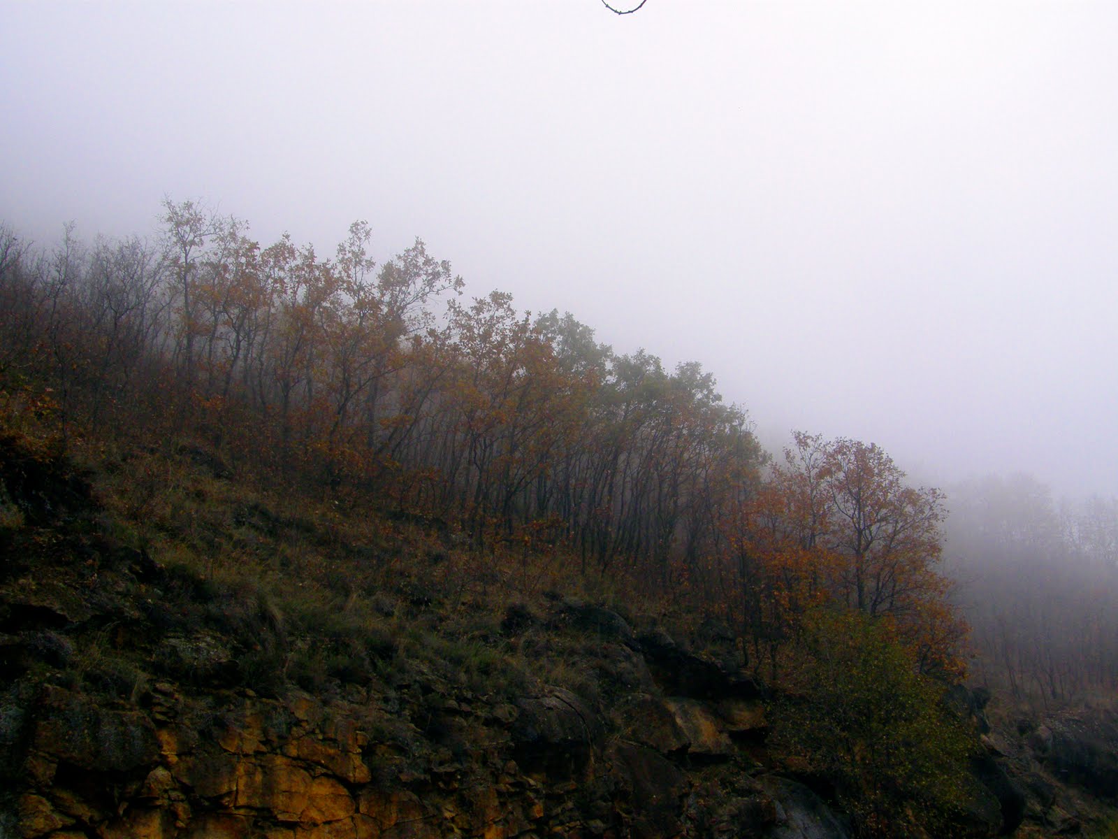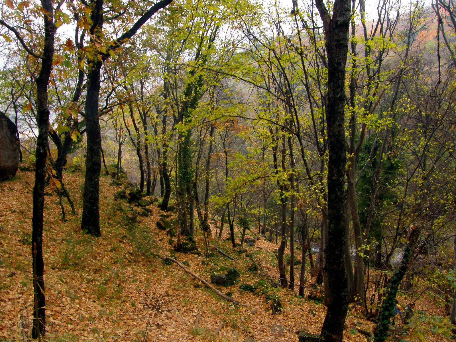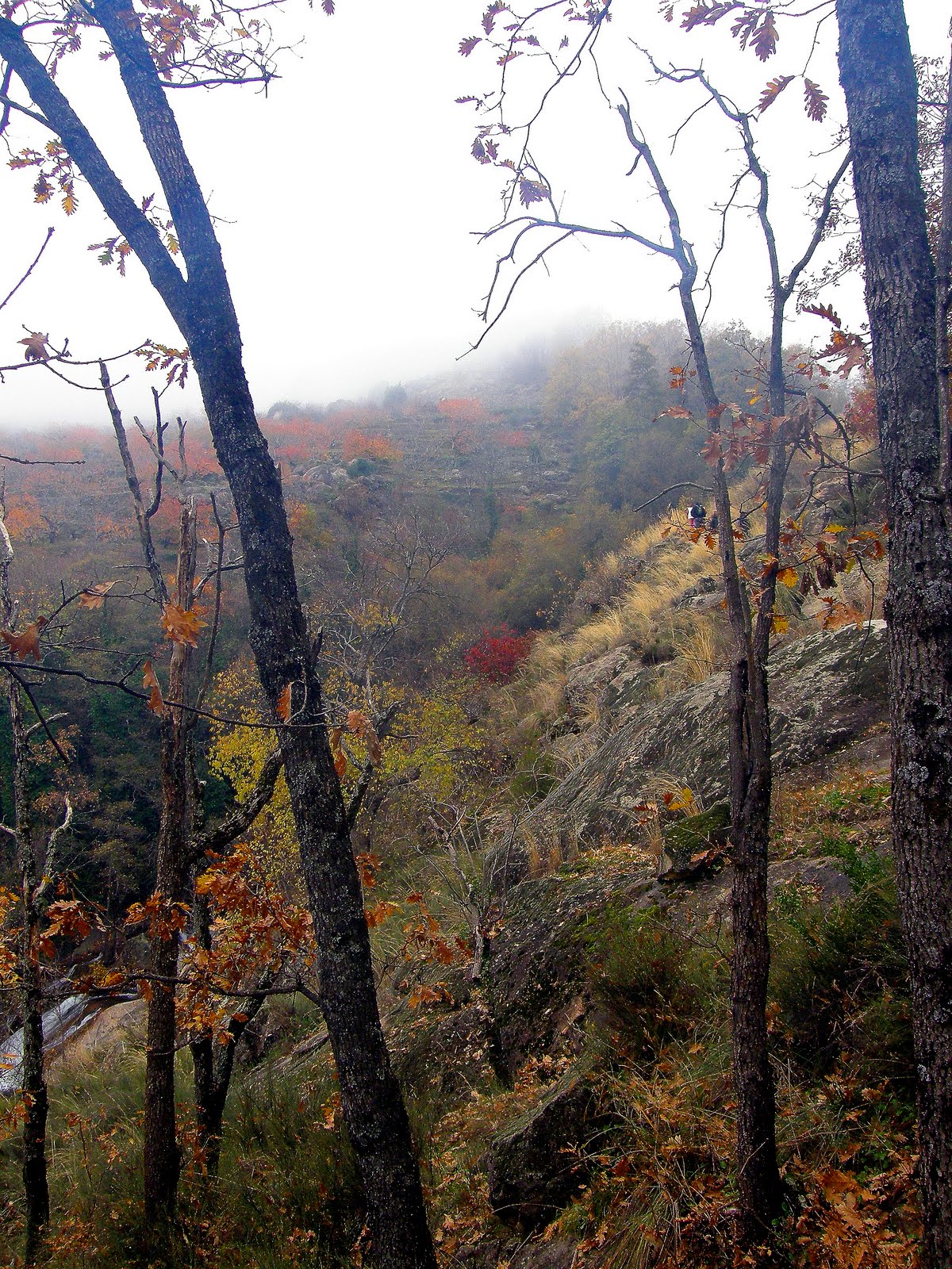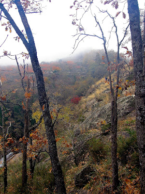 No ha llegado el otoño plenamente pero se intuye el color de la hivernada en el bosque, los robles se preparan para el invierno duro de la sierra, mejor tirar la hoja y dormitar hasta la primavera.