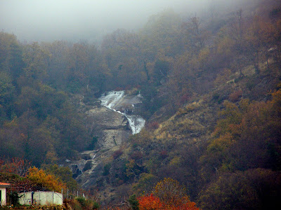 Vamos ascendiendo y el valle se dibuja, Cabrero otro de los pueblecitos encantadores del Jerte se muestra así en un día claro de otoño. Las columnas de humo son debido a la limpieza y la poda de los cerezos que, aprovechando el otoño, reciben los cuidados necesarios tras el estrés del verano.